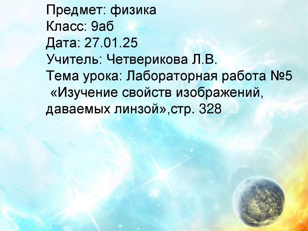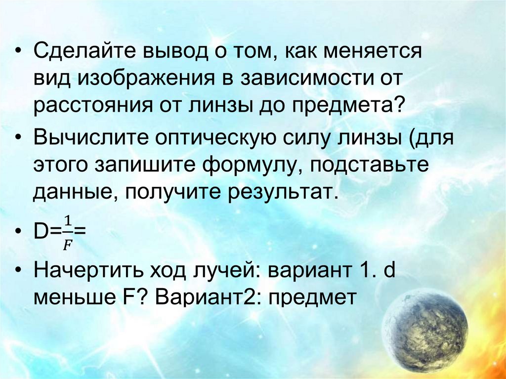 Изучение свойств изображений, даваемых линзой