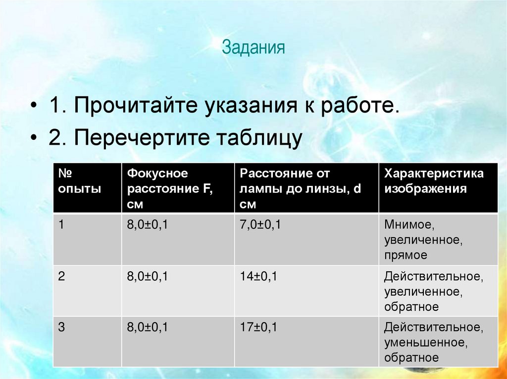 • 1. Прочитайте указания к работе.• 2. Перечертите таблицу