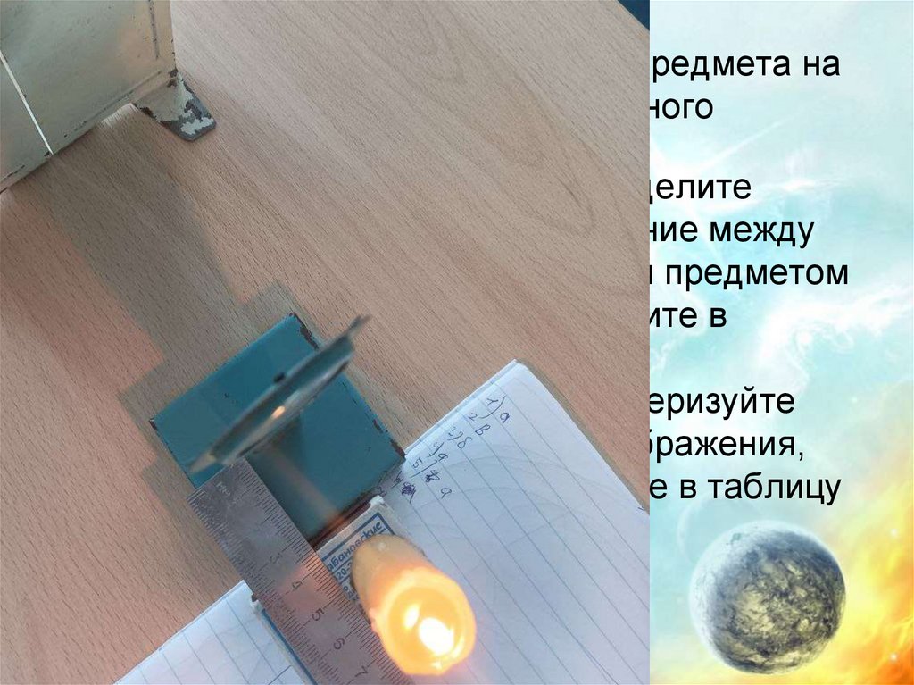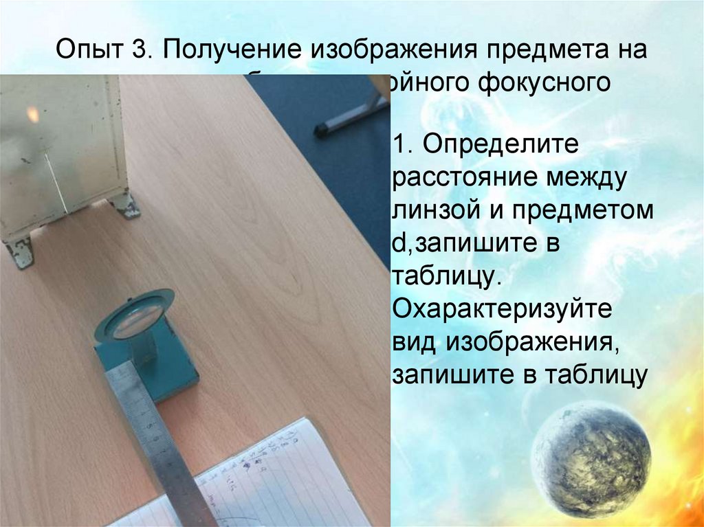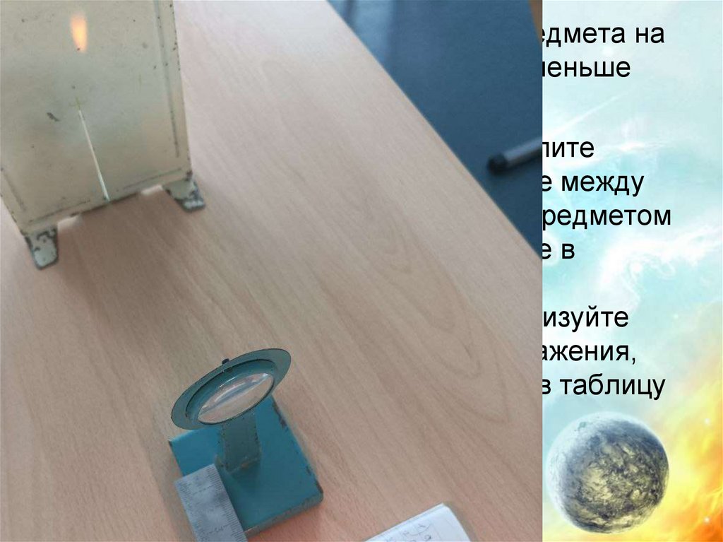 5. Опыт 1. Получение изображения предмета на расстоянии меньше фокусного