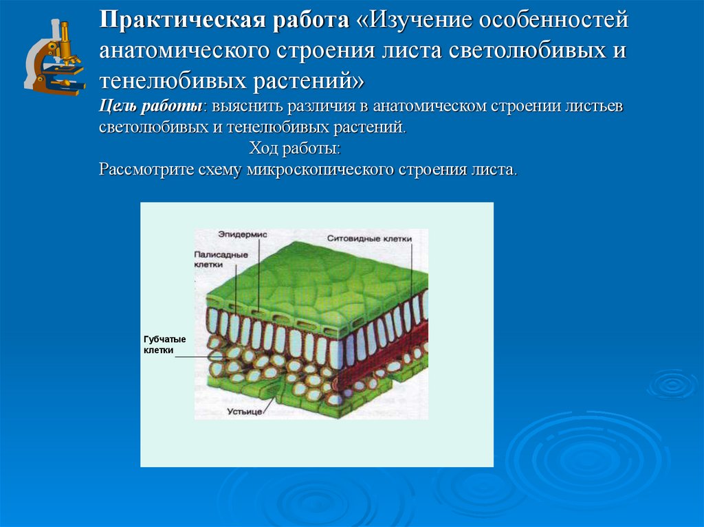 Практическая работа «Изучение особенностейанатомического строения листа светолюбивых и