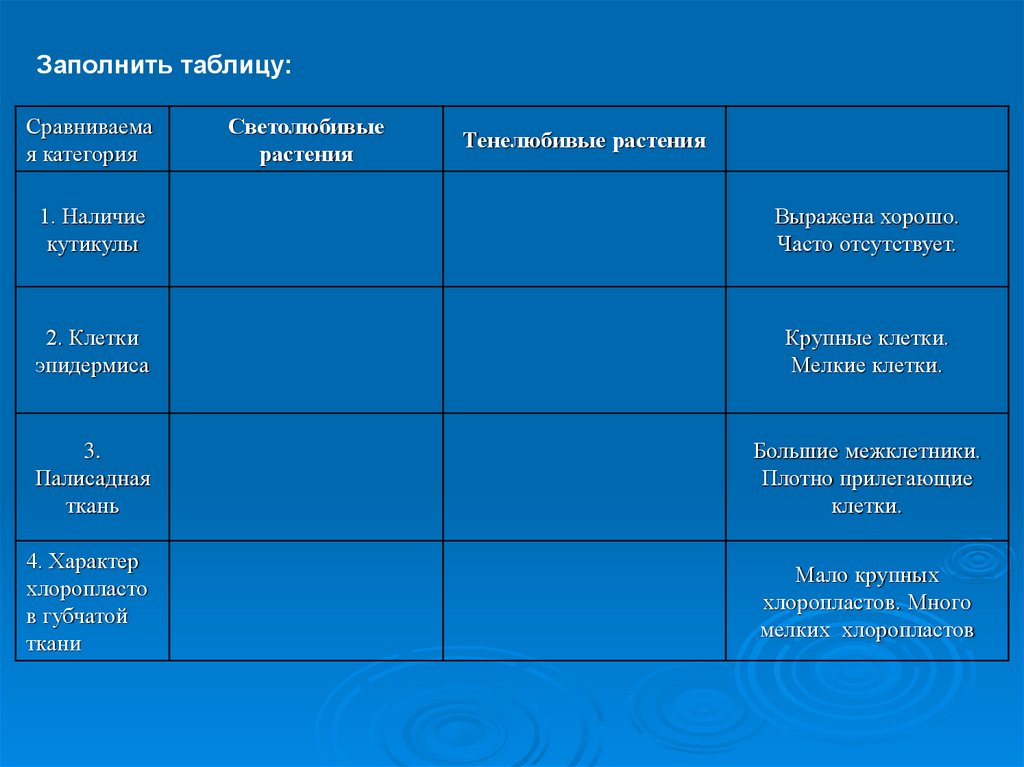 13. В чем заключаются различия в анатомическом строении листьев светолюбивых и тенелюбивых растений?