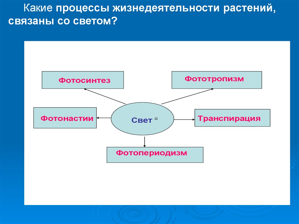 Какие процессы жизнедеятельности растений,связаны со светом?