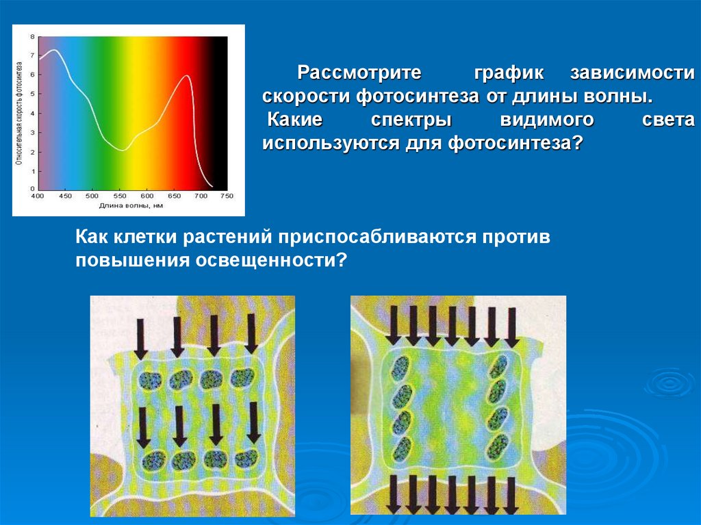 скорости фотосинтеза от длины волны.