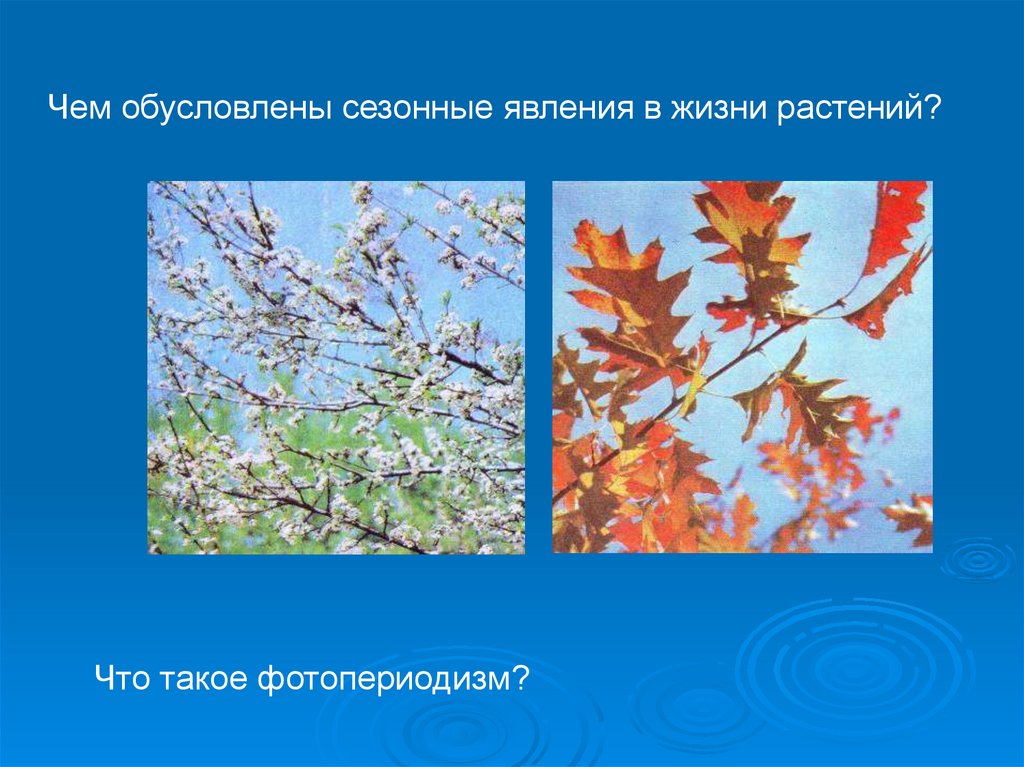 Чем обусловлены сезонные явления в жизни растений?Что такое фотопериодизм?