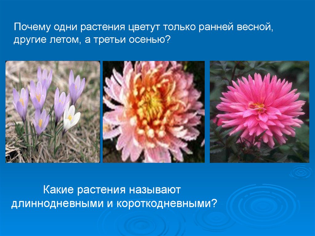 Почему одни растения цветут только ранней весной,другие летом, а третьи осенью?