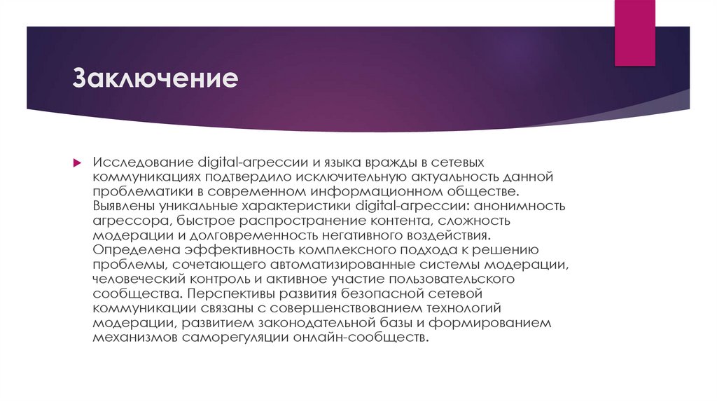 ЗаключениеИсследование digital-агрессии и языка вражды в сетевых