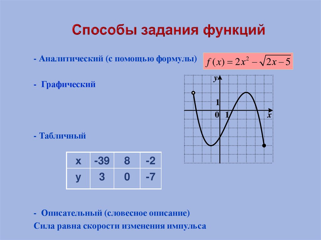 - Аналитический (с помощью формулы)f ( x) 2 х 2 2 х 5