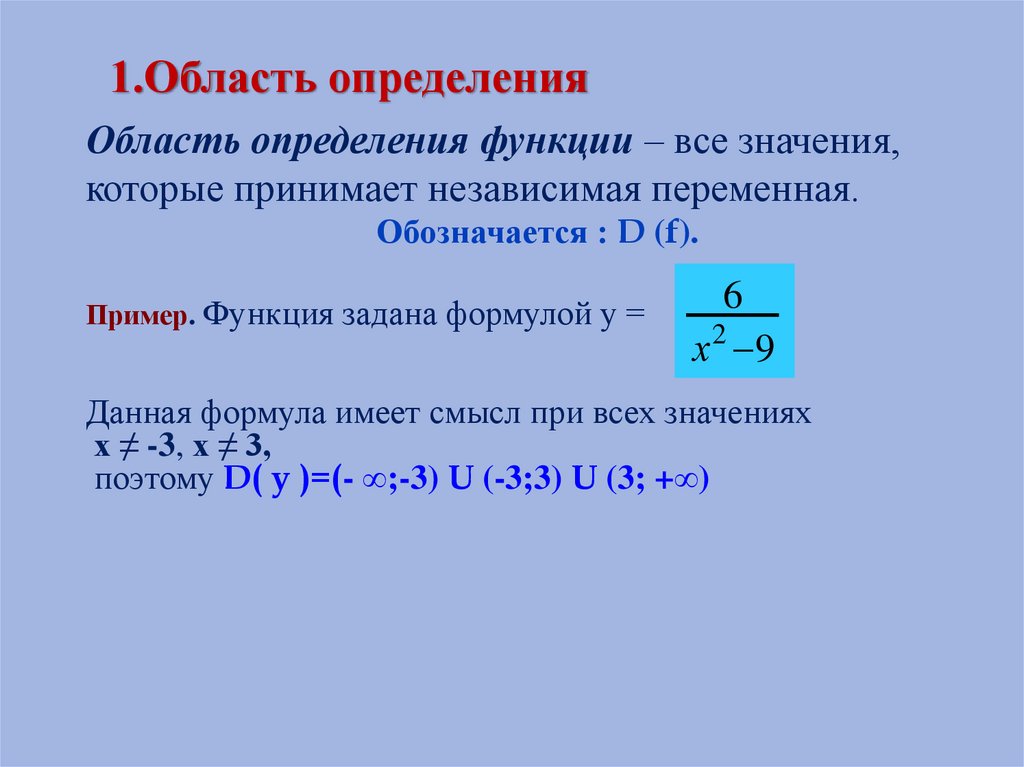 СВОЙСТВА ФУНКЦИИАлгоритм описания свойств функции
