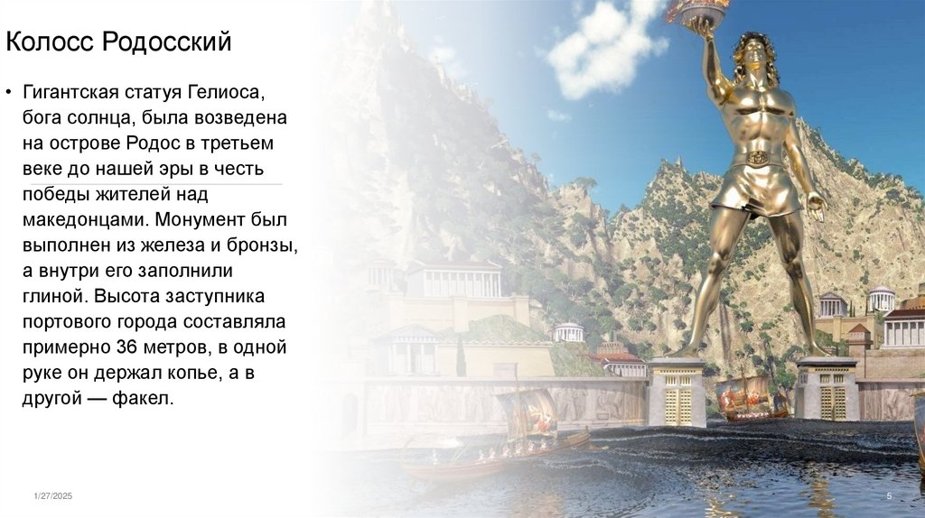 Колосс Родосский• Гигантская статуя Гелиоса,