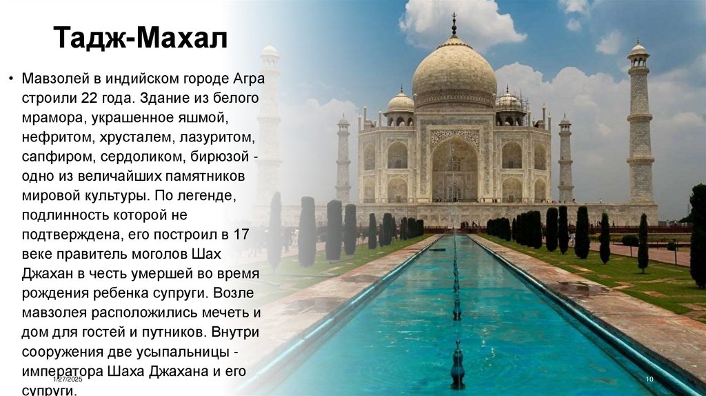Тадж-Махал• Мавзолей в индийском городе Агра