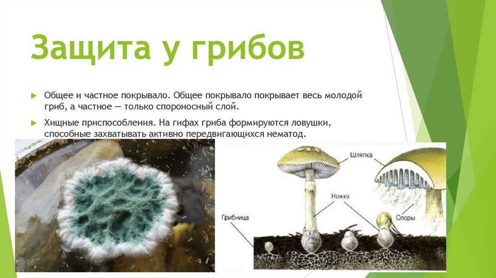 Защита у грибовОбщее и частное покрывало. Общее покрывало покрывает весь молодой