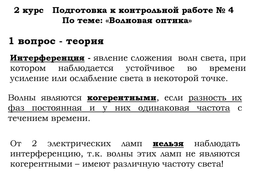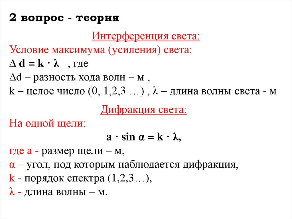 k – целое число (0, 1,2,3 …) , λ – длина волны света - м