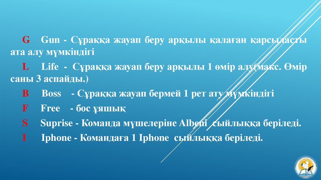 G Gun - Сұраққа жауап беру арқылы қалаған қарсыластыата алу мүмкіндігі