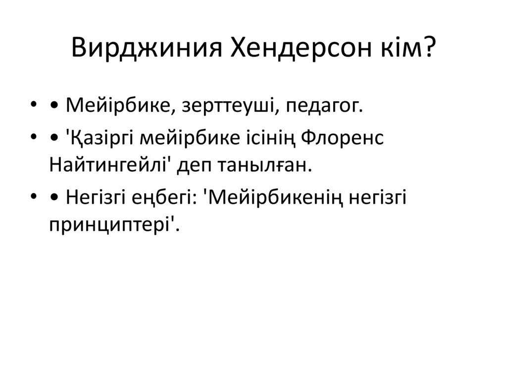 Вирджиния Хендерсон кім?• • Мейірбике, зерттеуші, педагог.