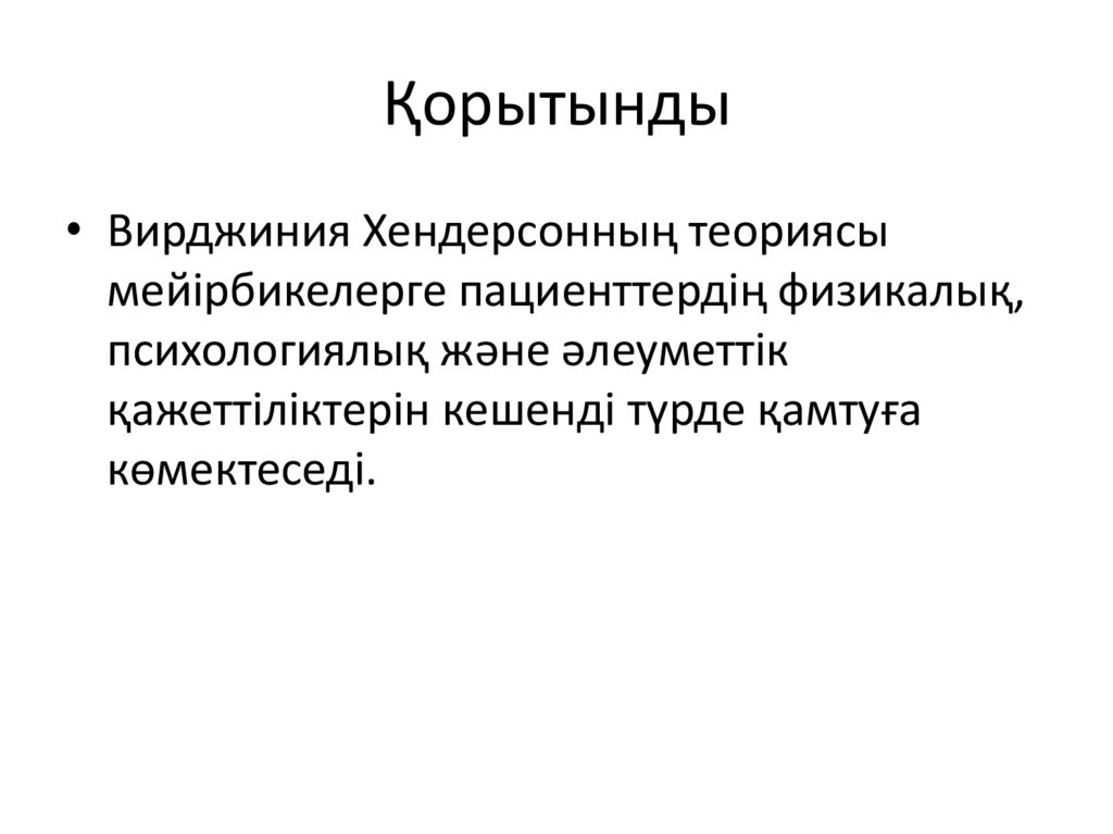 Қорытынды• Вирджиния Хендерсонның теориясы