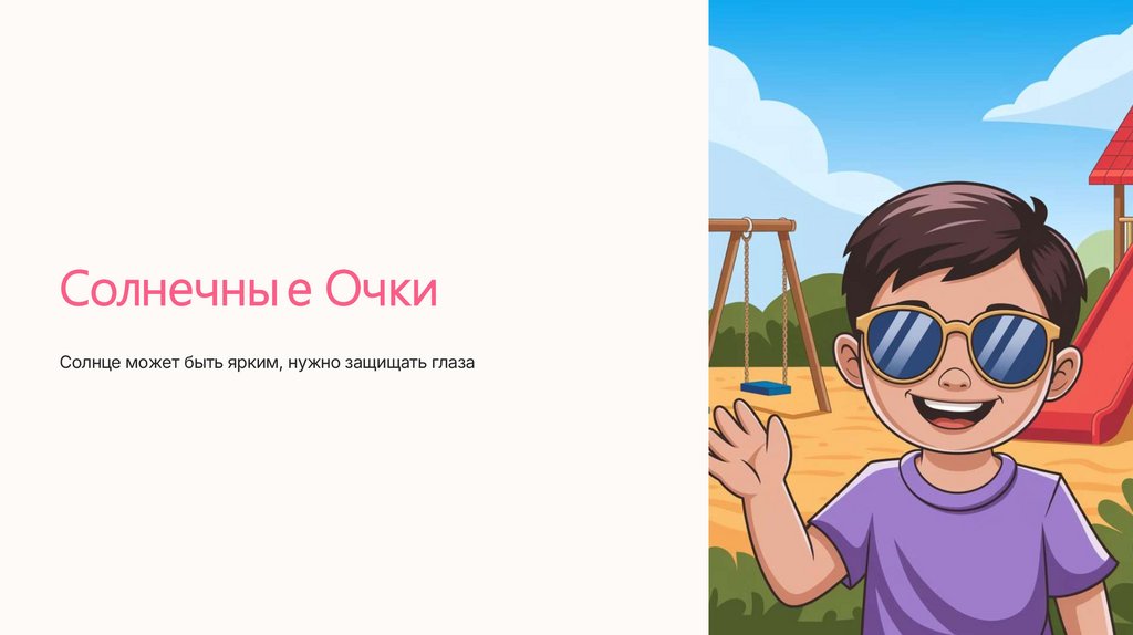 Солнечны е ОчкиСолнце может быть ярким, нужно защищать глаза