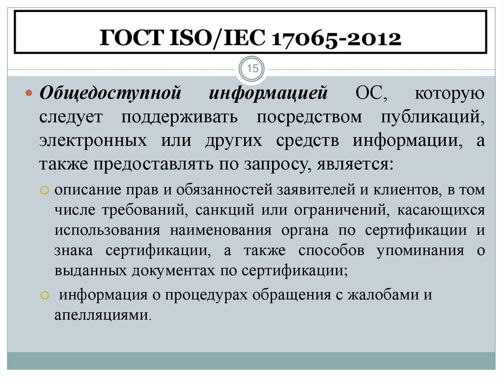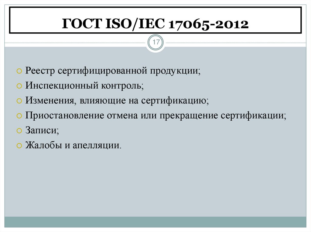 стандарте ISO/IEC 17065 (ГОСТ ISO/IEC 17065 -2012).