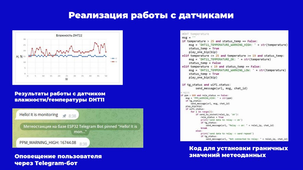 Реализация работы с датчикамиРезультаты работы с датчиком