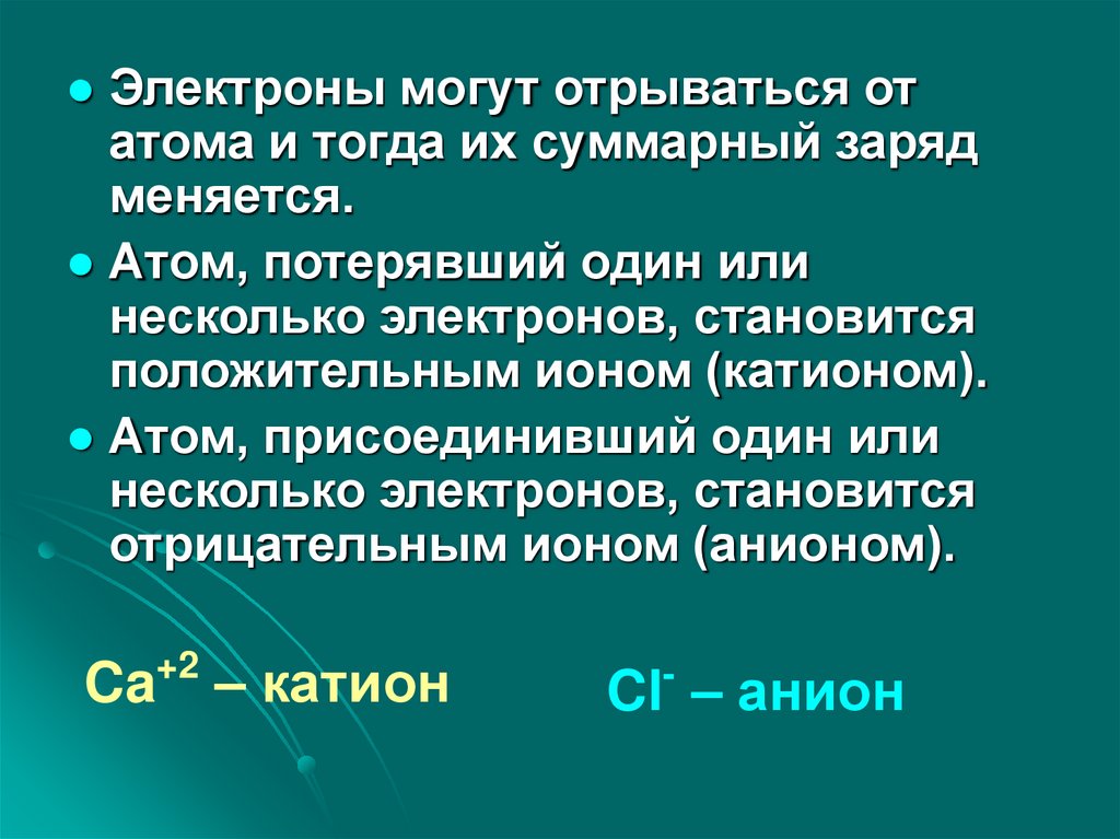 Электроны могут отрываться отатома и тогда их суммарный заряд