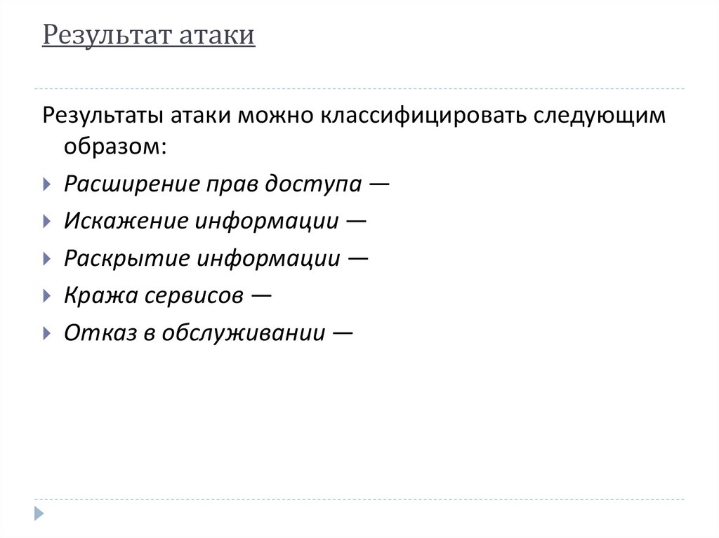 Результат атакиРезультаты атаки можно классифицировать следующим