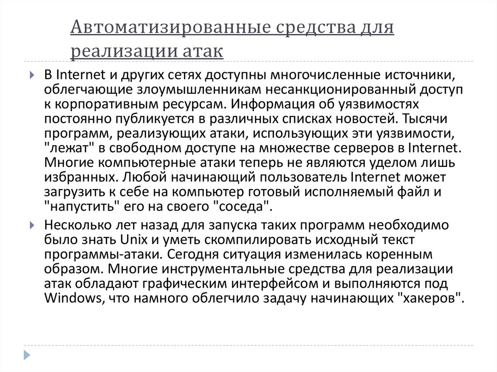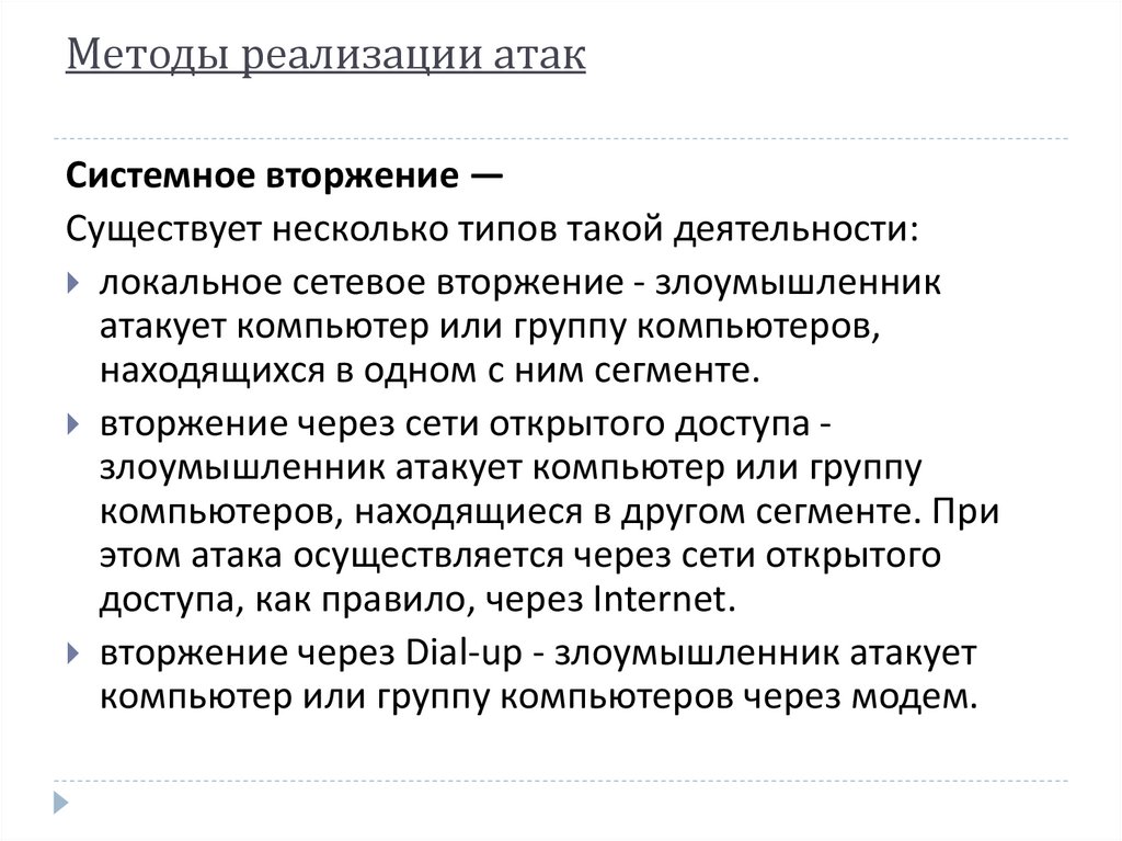 Средства реализации атакСредства (механизмы) реализации атак могут быть