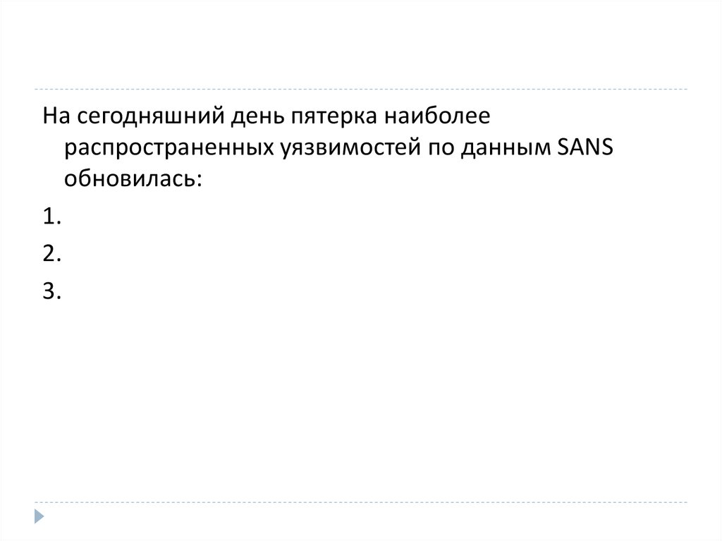 На сегодняшний день пятерка наиболеераспространенных уязвимостей по данным SANS
