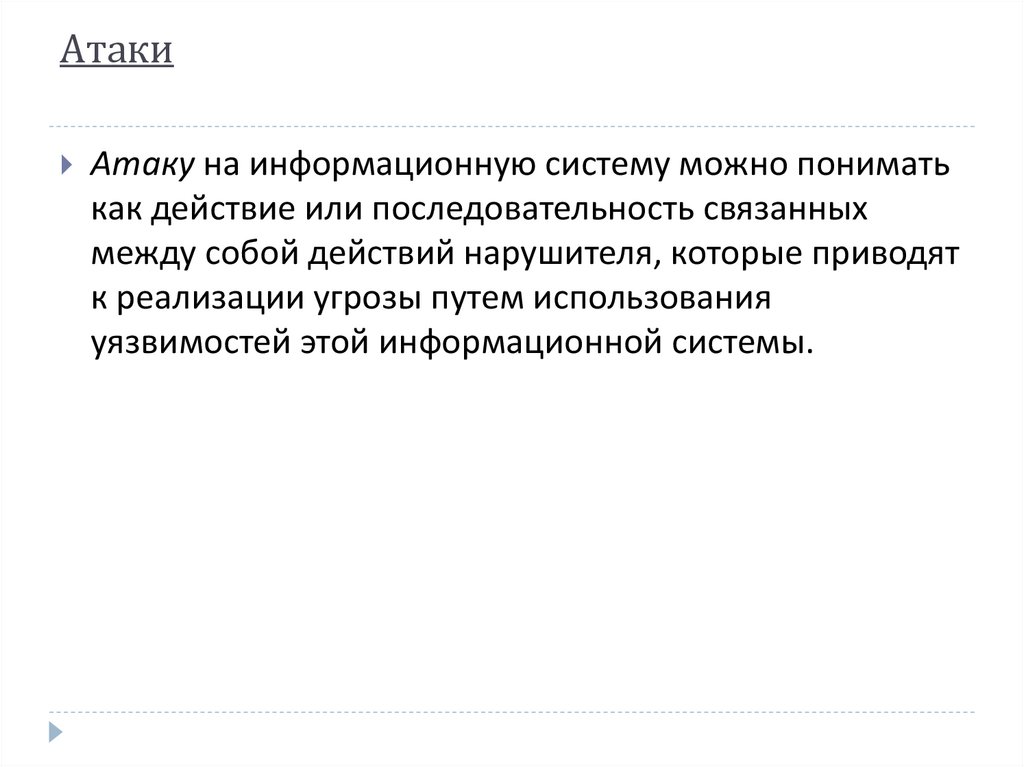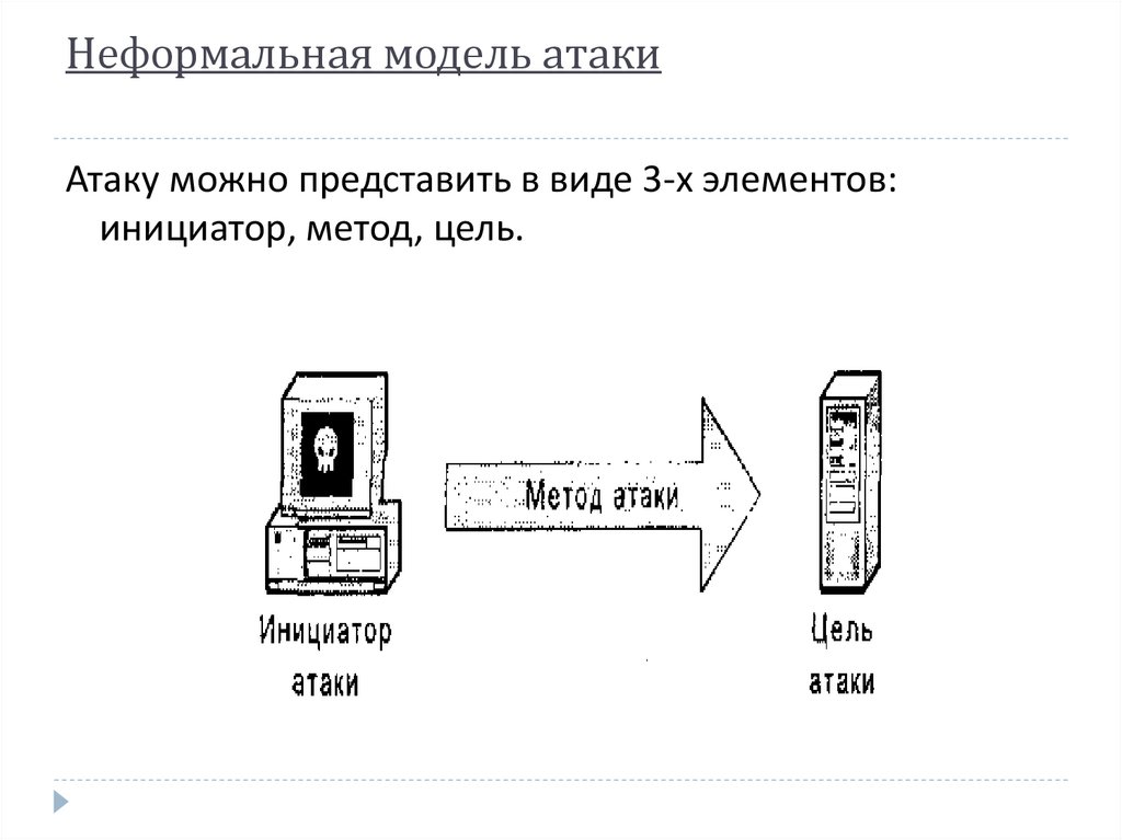 Неформальная модель атакиАтаку можно представить в виде 3-х элементов:
