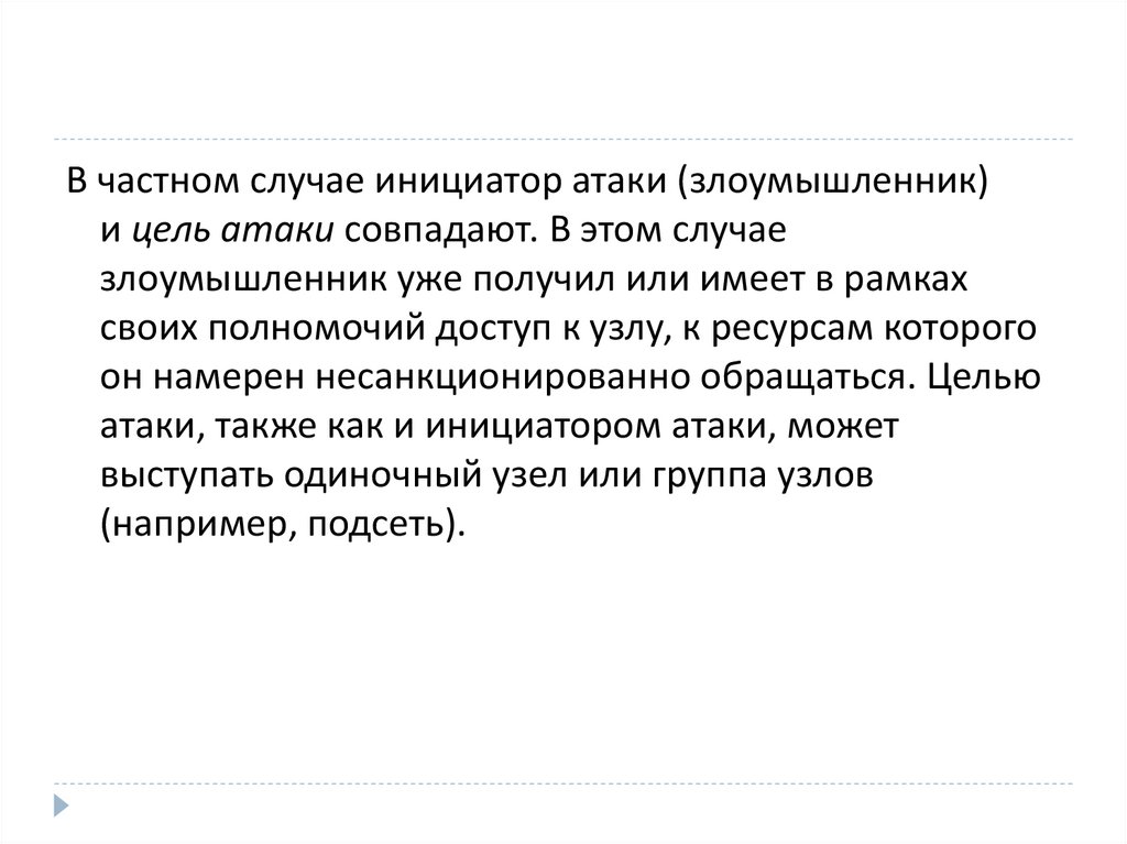 В частном случае инициатор атаки (злоумышленник)и цель атаки совпадают. В этом случае