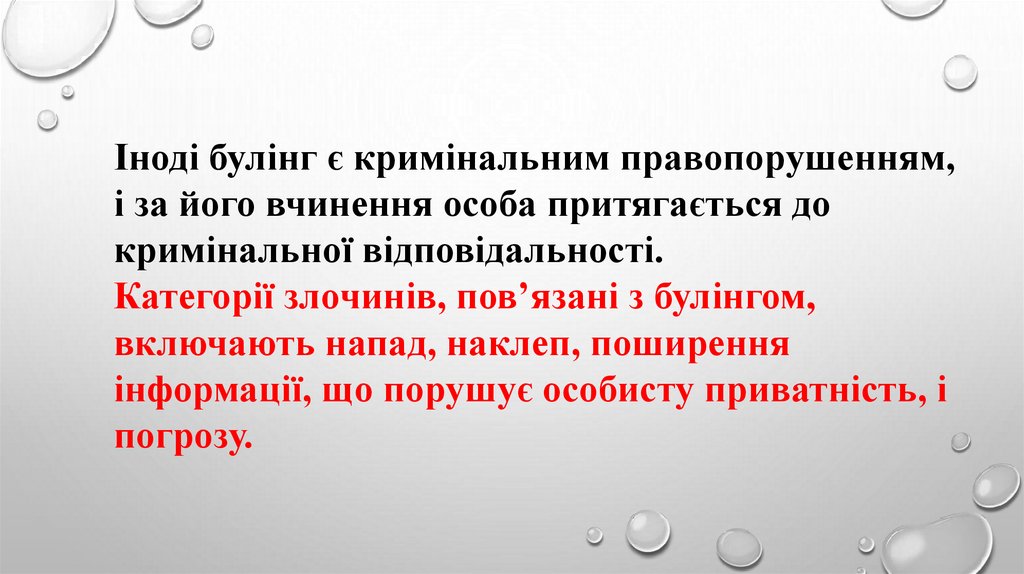 Іноді булінг є кримінальним правопорушенням,і за його вчинення особа притягається до
