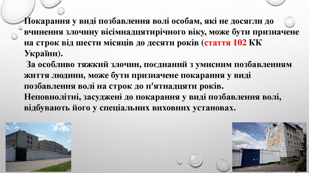 Покарання у виді позбавлення волі особам, які не досягли довчинення злочину вісімнадцятирічного віку, може бути призначене