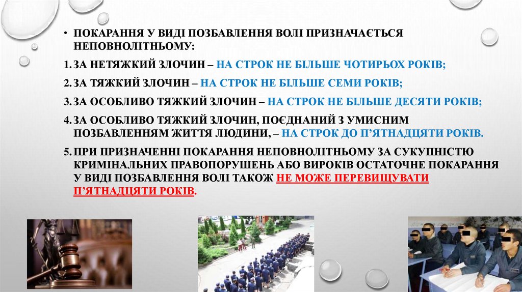• ПОКАРАННЯ У ВИДІ ПОЗБАВЛЕННЯ ВОЛІ ПРИЗНАЧАЄТЬСЯНЕПОВНОЛІТНЬОМУ: