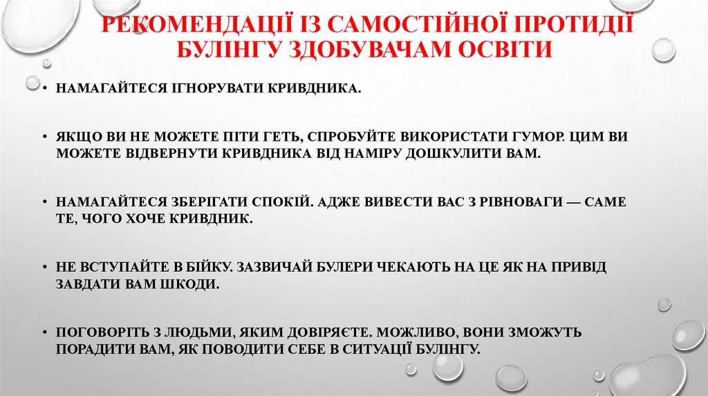 РЕКОМЕНДАЦІЇ ІЗ САМОСТІЙНОЇ ПРОТИДІЇБУЛІНГУ ЗДОБУВАЧАМ ОСВІТИ