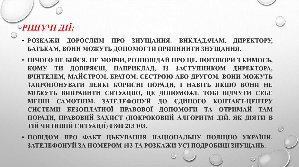 РІШУЧІ ДІЇ:• РОЗКАЖИ ДОРОСЛИМ ПРО ЗНУЩАННЯ. ВИКЛАДАЧАМ, ДИРЕКТОРУ,