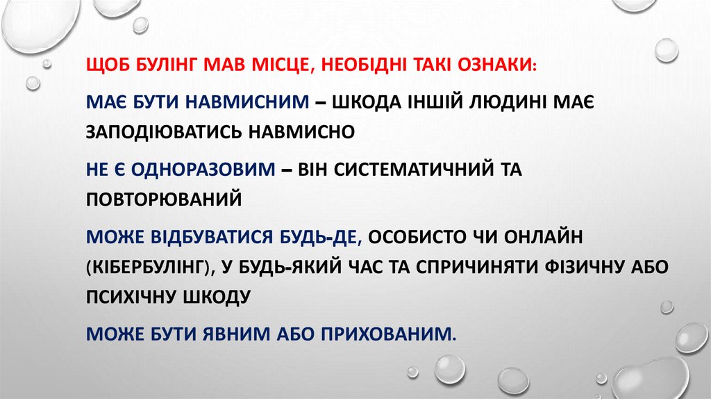 ЩОБ БУЛІНГ МАВ МІСЦЕ, НЕОБІДНІ ТАКІ ОЗНАКИ:МАЄ БУТИ НАВМИСНИМ – ШКОДА ІНШІЙ ЛЮДИНІ МАЄ