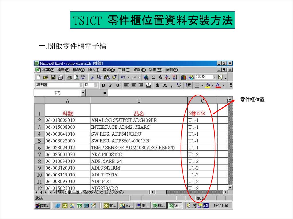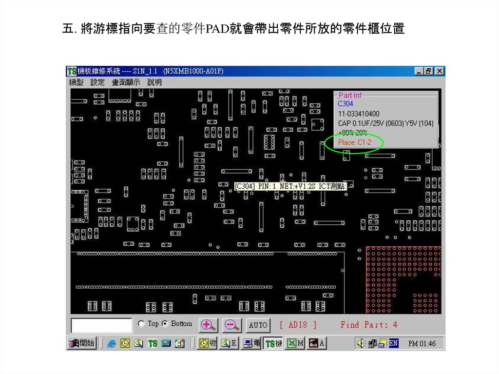 五. 將游標指向要查的零件PAD就會帶出零件所放的零件櫃位置