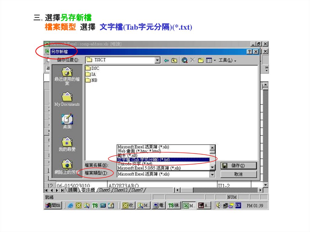檔案類型 選擇 文字檔(Tab字元分隔)(*.txt)