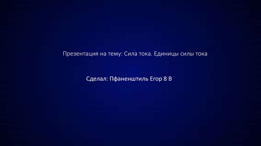 Презентация на тему: Сила тока. Единицы силы токаСделал: Пфаненштиль Егор 8 В