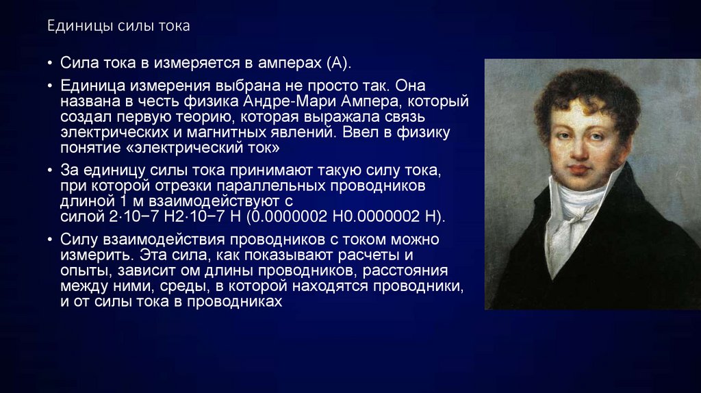 Единицы силы тока• Сила тока в измеряется в амперах (А).