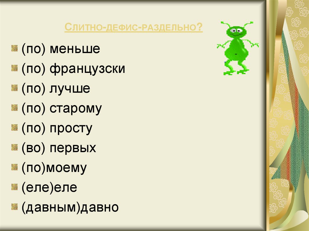 СЛИТНО-ДЕФИС-РАЗДЕЛЬНО?(по) меньше