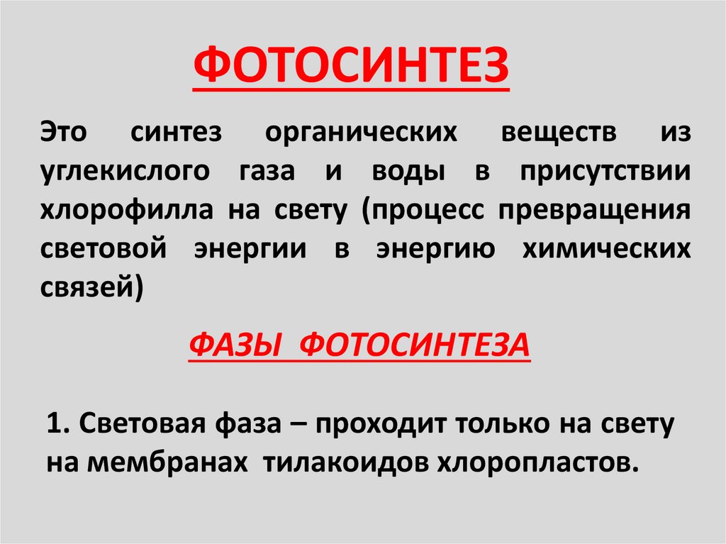ФОТОСИНТЕЗЭто синтез органических веществ из