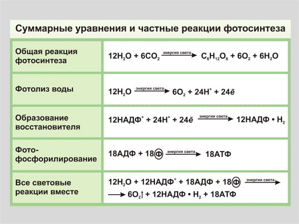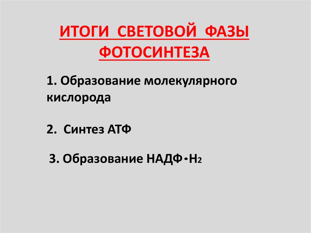 ИТОГИ СВЕТОВОЙ ФАЗЫФОТОСИНТЕЗА