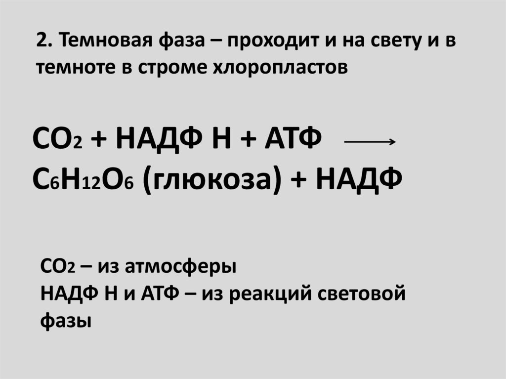 2. Темновая фаза – проходит и на свету и втемноте в строме хлоропластов