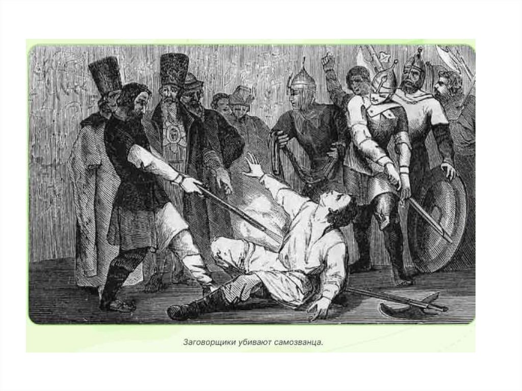 против самозванца. Заговорщики ворвались в Кремль и убили