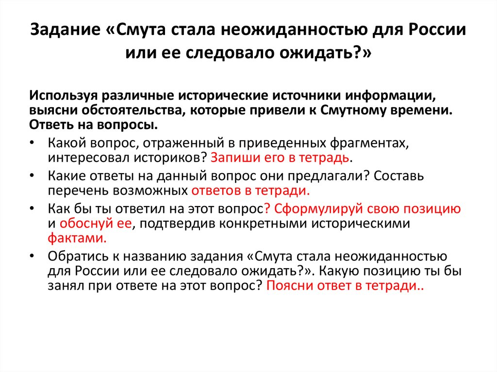 Задание «Смута стала неожиданностью для Россииили ее следовало ожидать?»