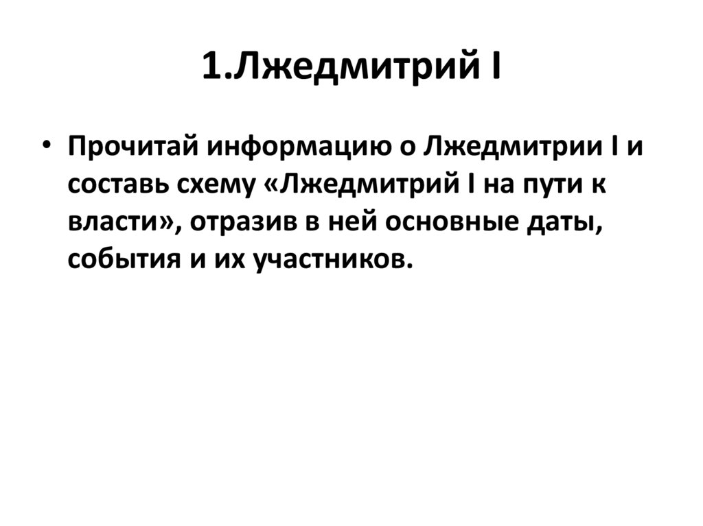 1.Лжедмитрий I• Прочитай информацию о Лжедмитрии I и