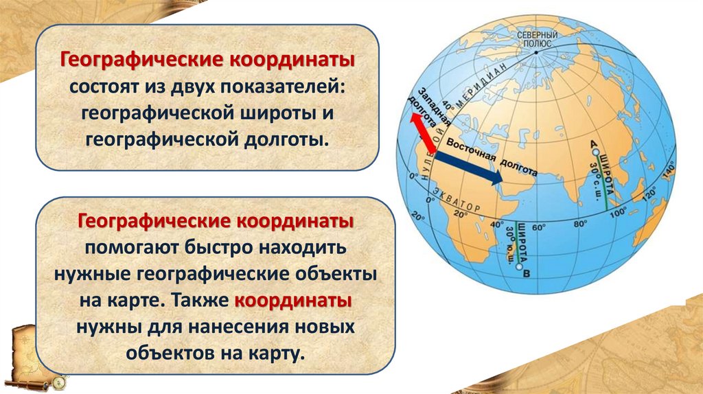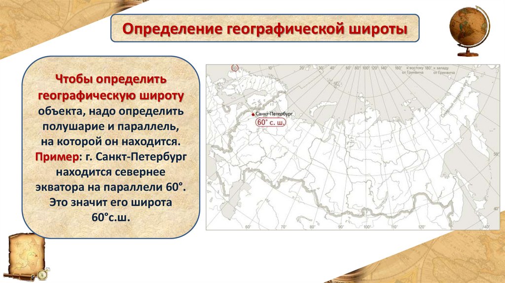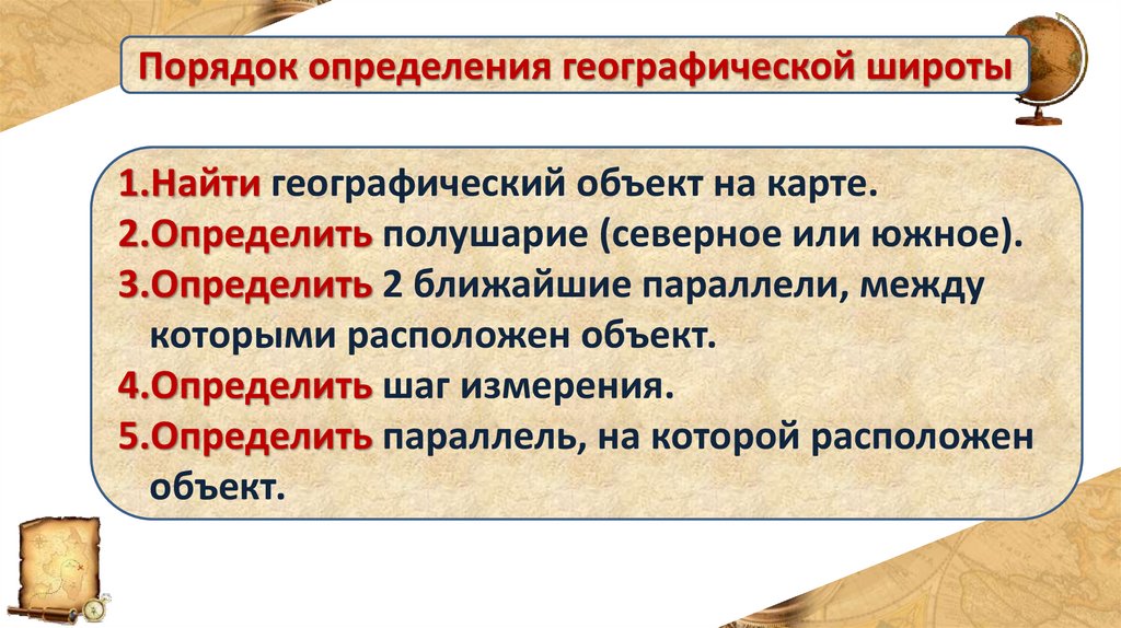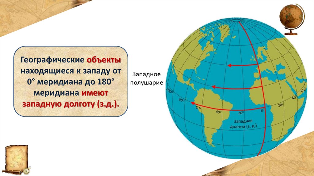 Порядок определения географической долготы1.Найти географический объект на карте.