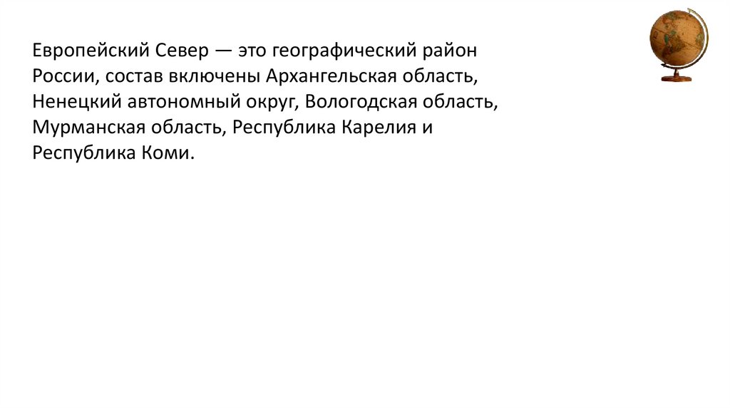 Европейский Север — это географический районРоссии, состав включены Архангельская область,