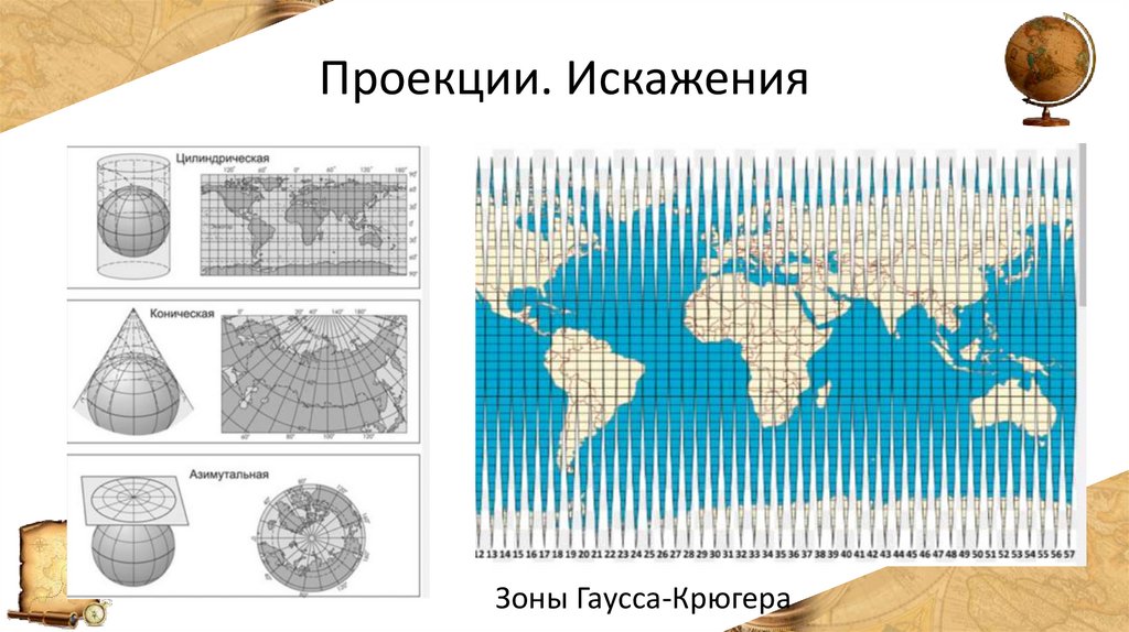 Проекции. ИскаженияЗоны Гаусса-Крюгера