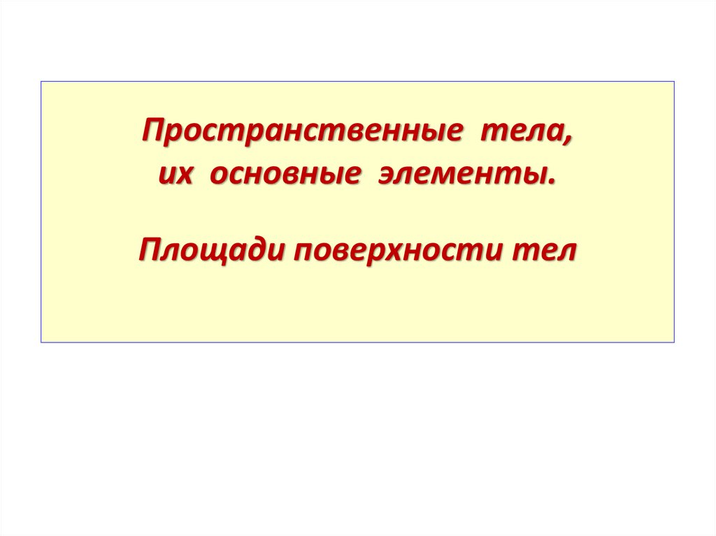 Плоские фигуры и пространственные тела, их основные элементы. Площади плоских фигур и площади поверхности тел