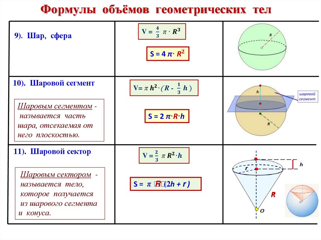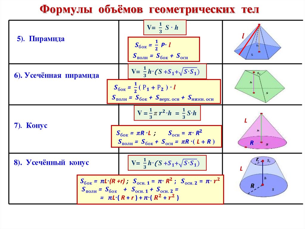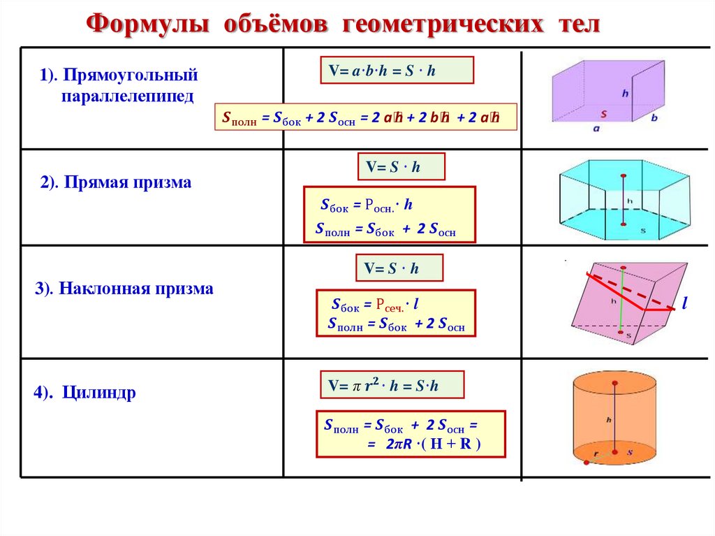 и площади поверхности тел